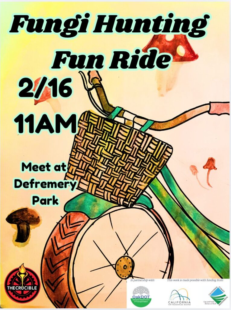 “Join us on a fun ride around West Oakland and Lake Merritt. We’ll stop by MountainView Cemetery and drop off anyone who isn’t in the mood to take the slow, meandering uphill ride to Tilden, where’ we’ll look for any mushrooms that have sprouted after the rains! Then head on back to Oakland by way of the bayview trail to eat at Wally’s Cafe, an Oakland Institution (bring cash!)”