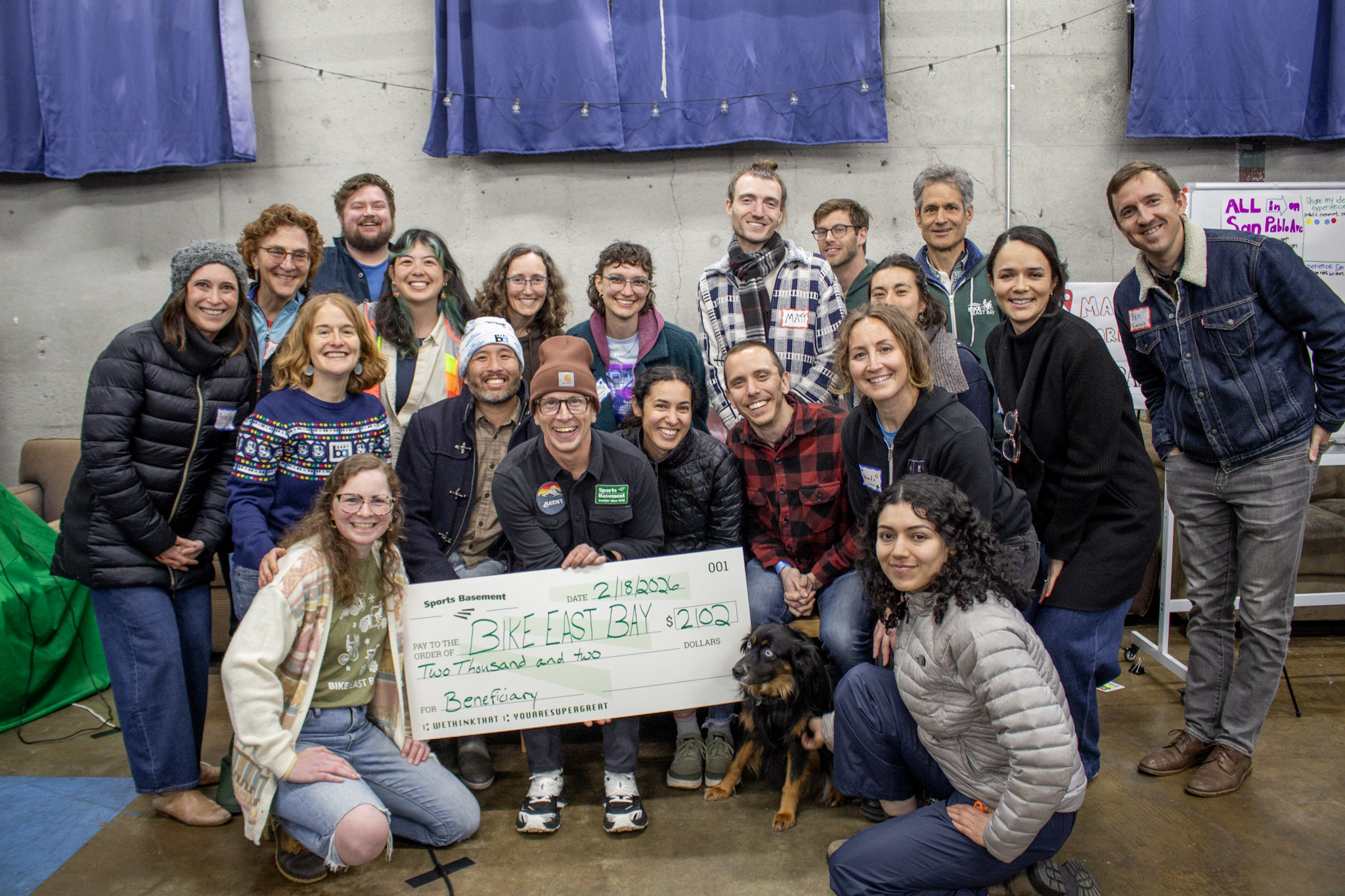 - Our awesome partners from Sports Basement presented us with a check for $2,102– funds that directly come from wonderful members like you, who have designated Bike East Bay as the recipient of 10% of every Sports Basement purchase you make.