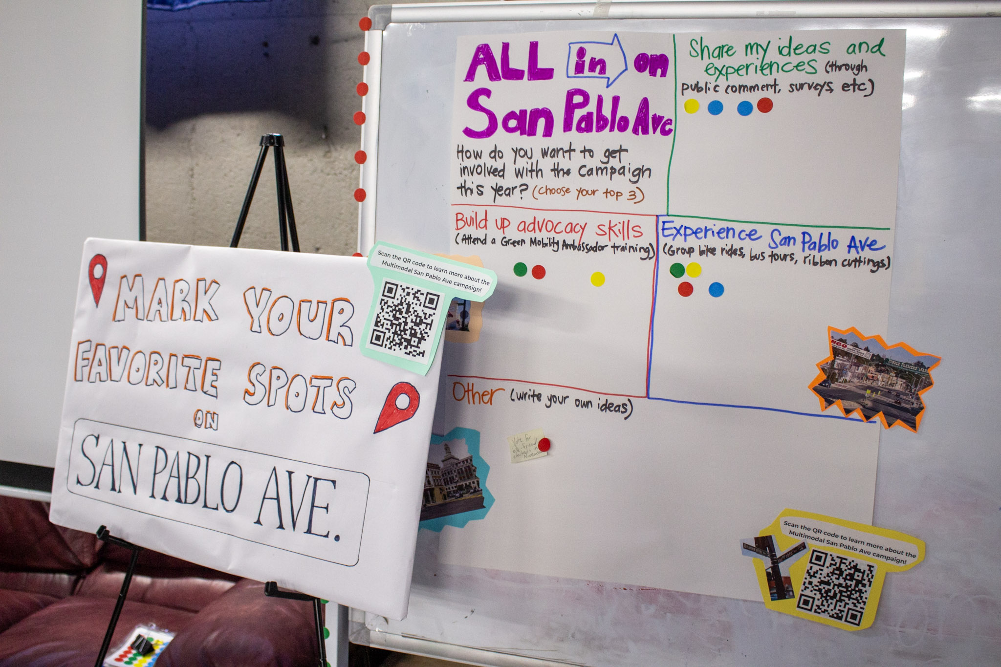 Our interactive activities this year focused on our San Pablo Avenue Campaign: there are multiple projects and touchpoints slated for the next few months, and we’ll be ready to offer our ideas and advocate for the safest streets possible. Members shared their favorite spots along San Pablo Ave, and also let us know what types of programming we should plan this year to get folks to tap in. You can read the latest about this campaign here!